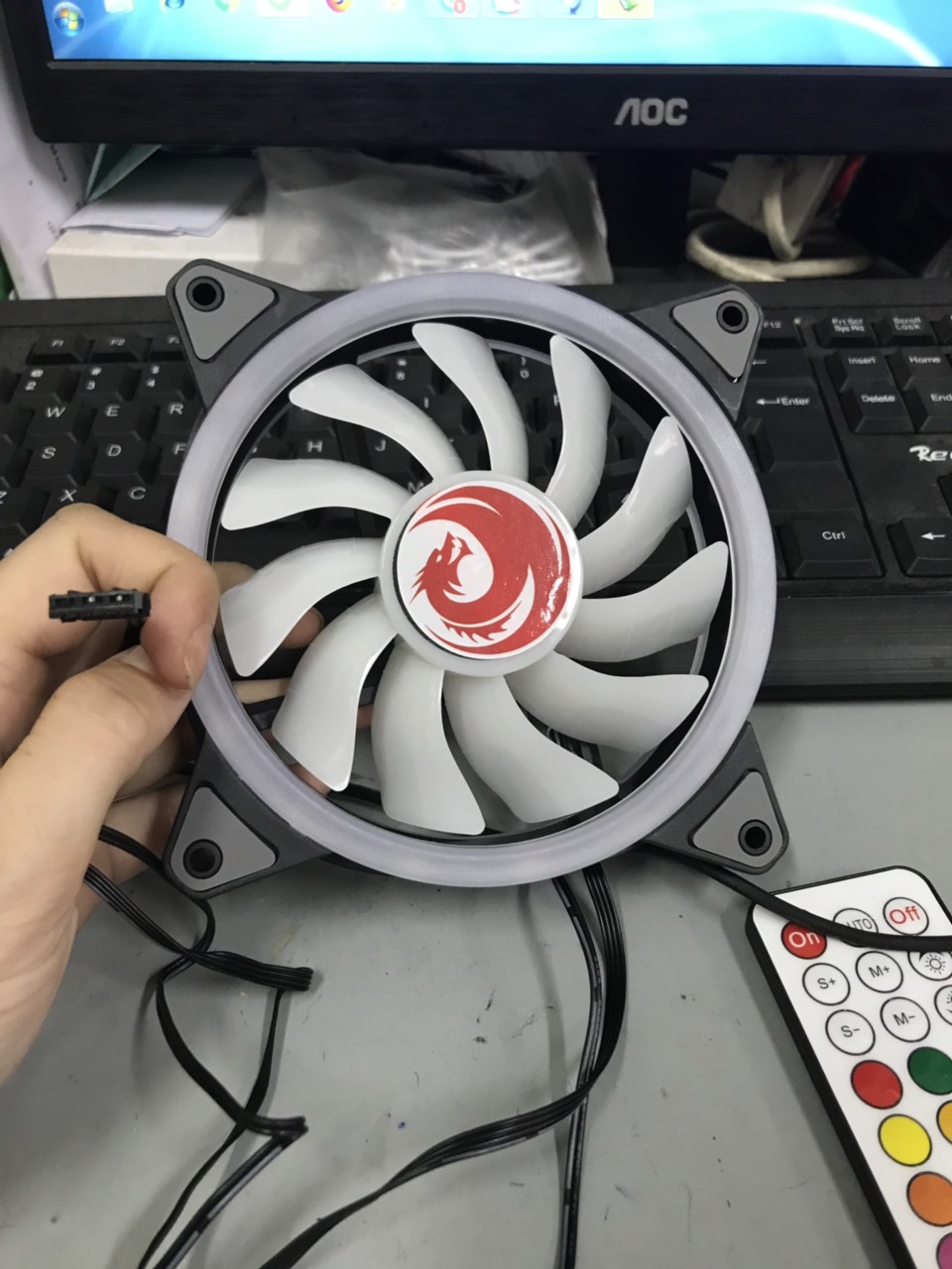 - Lắp quạt vào bộ Hub theo thứ tự liên tục từ Fan1 -> Fan10. - Kết nối dây nguồn vào Hub điều khiển với bộ nguồn của máy tính theo dạng Molex 4pin. - Bật remote và điều khiển các hiệu ứng và tốc độ theo ý muốn.