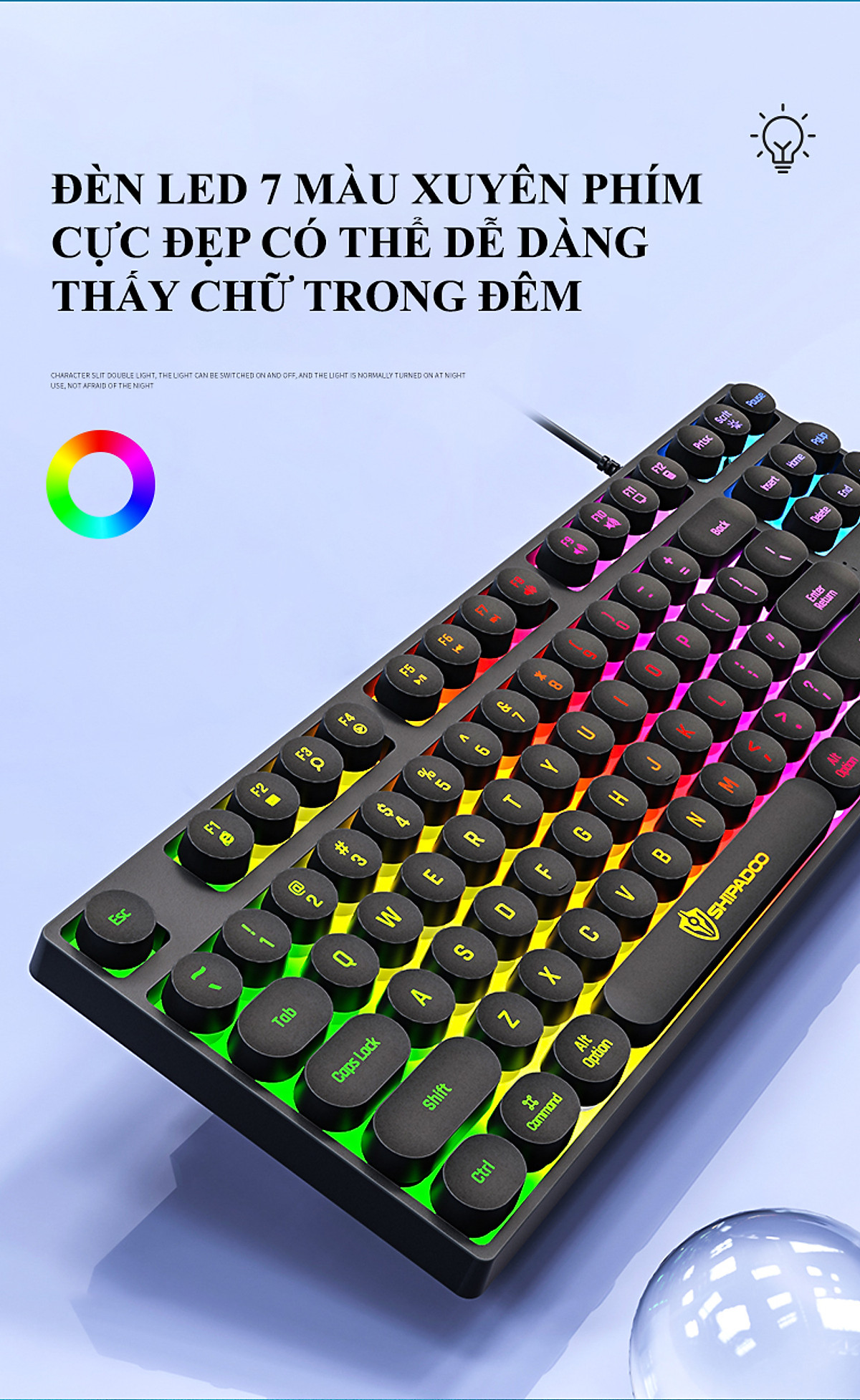 Bàn phím giả cơ SHIPADOO K87  Nút tròn đèn led 7 màu cực đẹp (hồng/ đen)