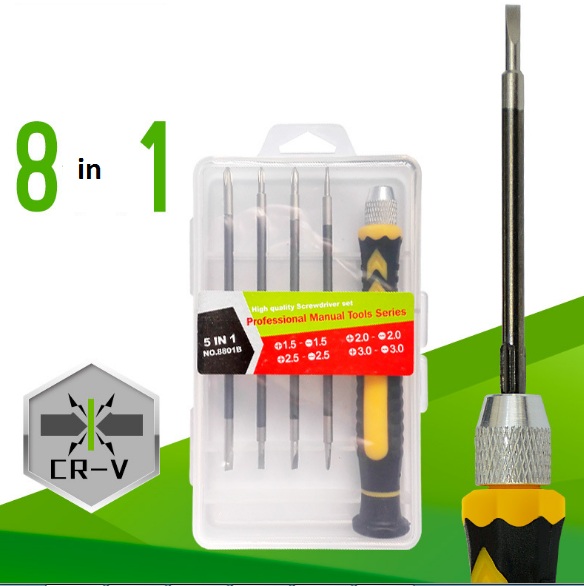 Bộ tua vít 5 in 1 Hổ trợ 8 đầu dùng sửa điện thoại-V12