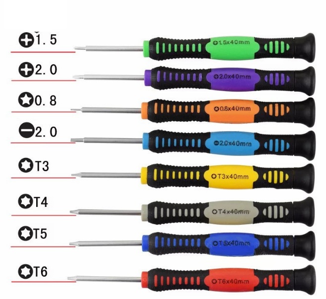 • Bao gồm 8 tua vít với các đầu: T4 T5 T6 0.8★ 1.2★ -1.2+ 1.5+ 2.0