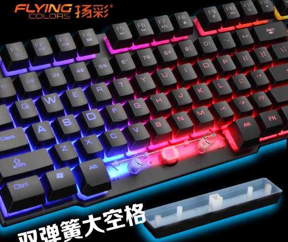 Bàn phím Flying Color K8 Giả cơ Led 7 màu chuyên cho game thủ + Bàn phím cực đẹp, cực chất thiết kế chuẩn cho game thủ chuyên nghiệp + Phím gõ cao, được thiết kế giả cơ với âm thanh nghe cực thích tai + Hệ thống đèn Led 7 màu hỗ trợ game thủ chơi đêm (LED xuyên phím) nhìn rõ phím hơn + Hệ thống hỗ trợ gồm phím tăng giảm âm lượng ngay trên bàn phím, không phải thoát ra để điều chỉnh âm lượng khi chơi game