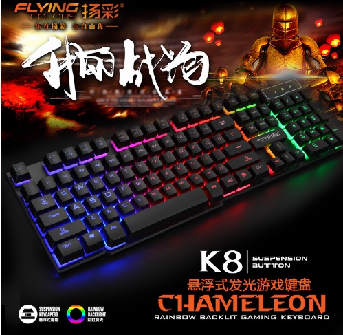 Bàn phím led chuyên game giả cơ với thiết kế tựa như 1 bàn phím cơ với đường nét và kiểu dáng rất phá cách, hệ thống đèn led dưới nền cực kỳ ấn tượng với 7 gam màu trãi đều trên bàn phím. Giúp người dùng, đặc biệt là các game thủ có thể thoải mái sử dụng vào ban đêm.