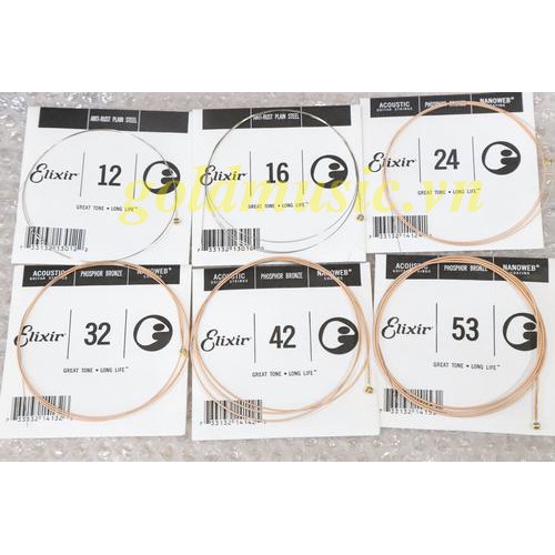 • Bộ Dây Đàn Guitar Acoustic Elixir 16052 được làm bằng dây thép bọc niken, phủ Nanoweb rất mỏng khiến người chơi thấy giống như đang chơi dây thông thường, kích cỡ 12 - 53, loại Light, tạo sự thoải mái khi sử dụng.