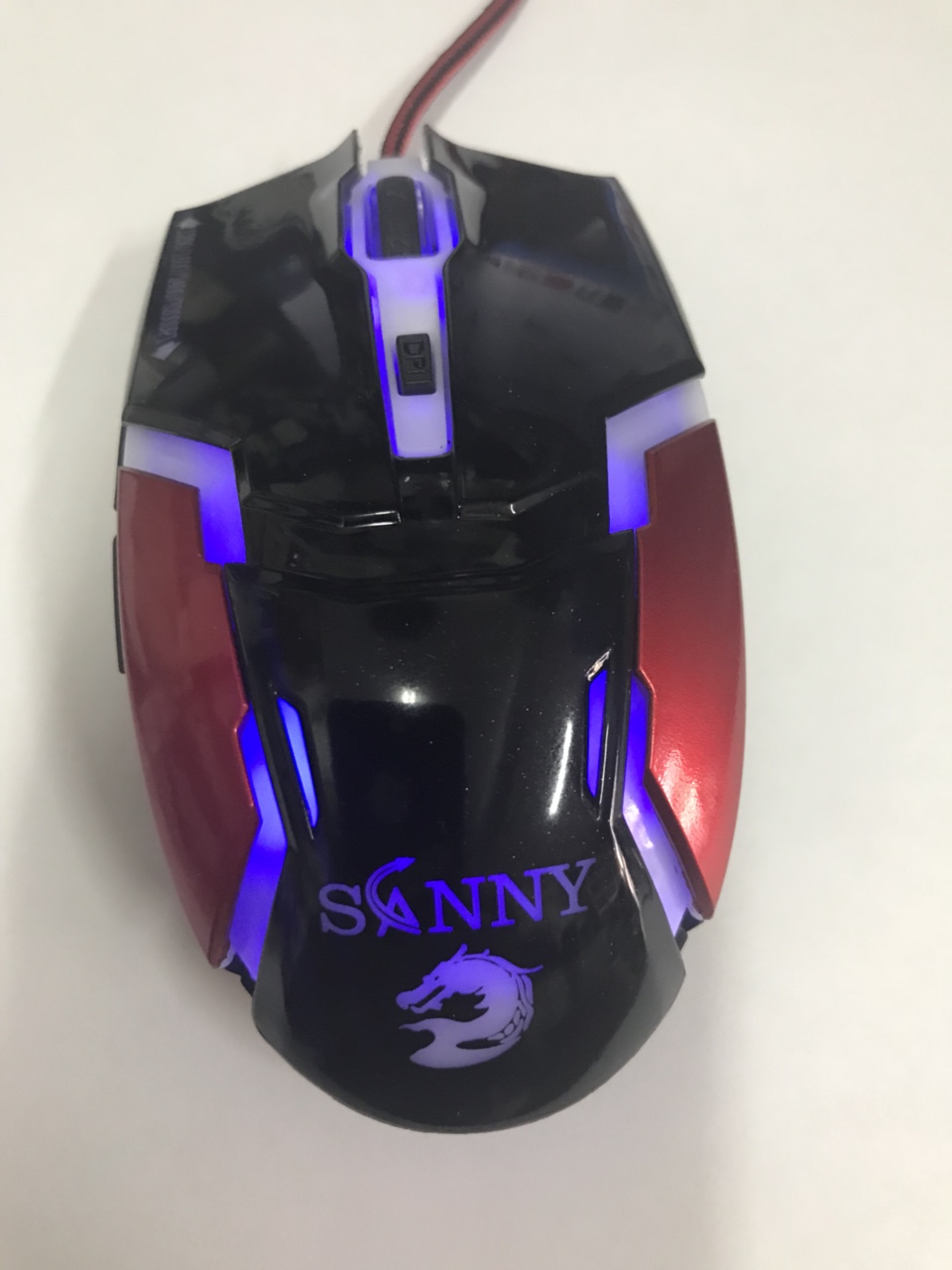 -Kết nối cổng usb led đổi màu liên tục ,biểu tưởng con rồn làm tăng lên sự nổi bật của chuột SANNY V1