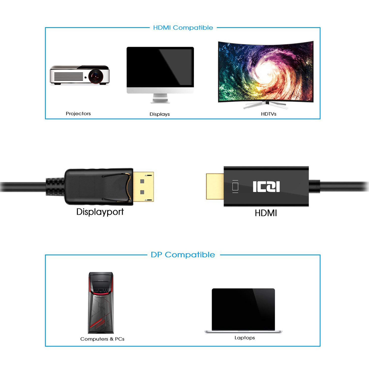 • Cáp chuyển DisplayPort sang HDMI sử dụng kết nối máy tính, Laptop, card đồ họa ...sang ti vi, máy chiếu, màn hình lớn... xuất video có độ nét cao