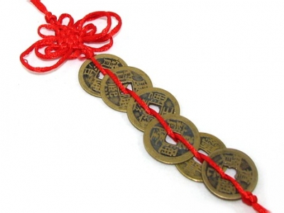 Chuỗi dây treo phong thủy tiền xu Bát Bạch gồm 8 đồng tiền xu cổ xâu kết lại với nhau bằng dây chỉ màu đỏ, phía trên dây treo có hình nút thắt đồng tâm và phía dưới là dải dây tua rua đỏ mang ý nghĩa phong thủy rất thịnh vượng.