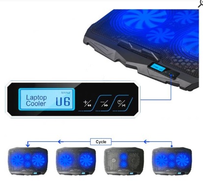 Chiếc đế tản nhiệt này có thể điều chỉnh được tốc độ quạt, hỗ trợ một số cài đặt nâng cao và thậm chí có một màn hình hiển thị tiện lợi, và đèn phát sáng để trang trí.