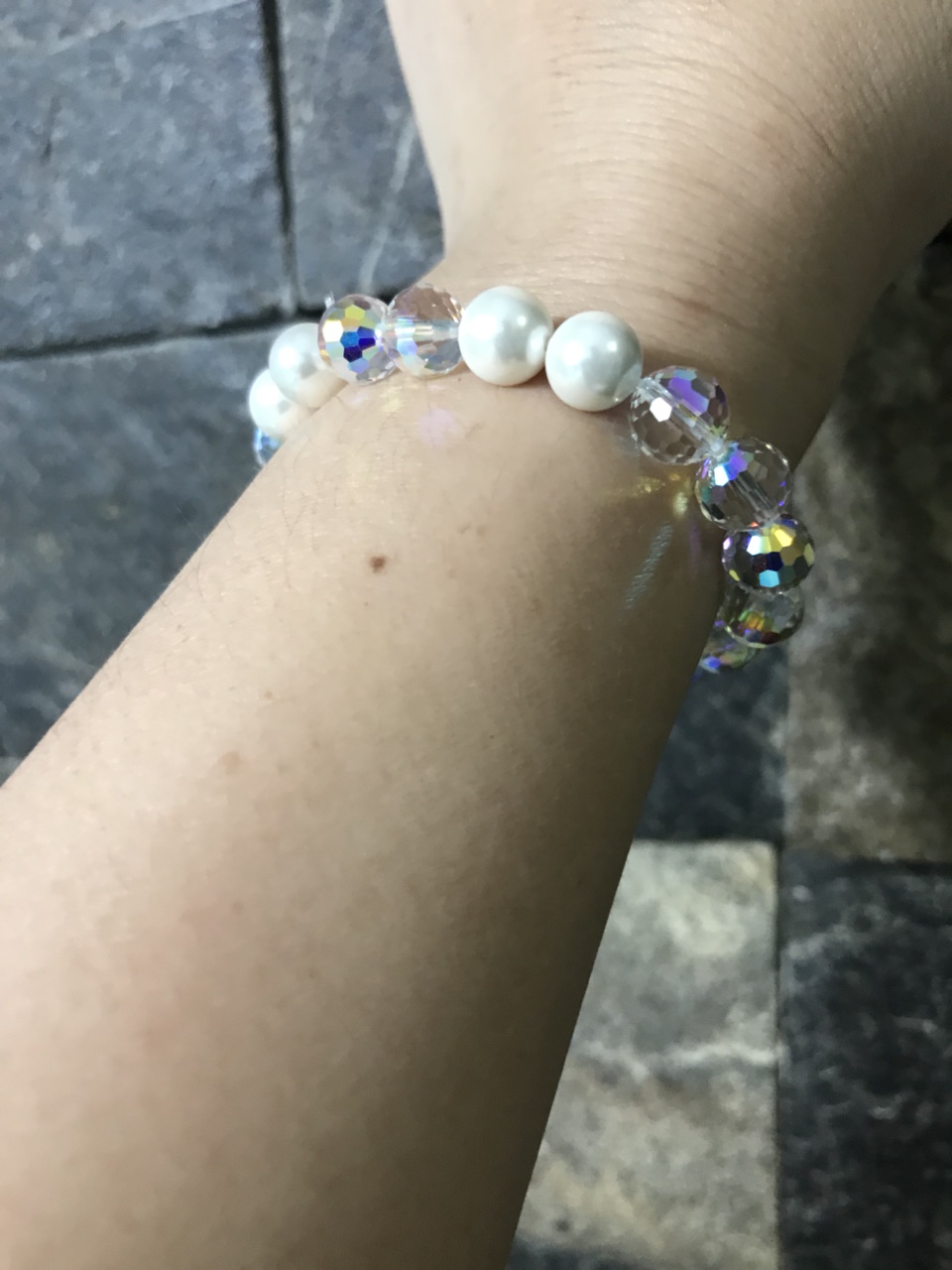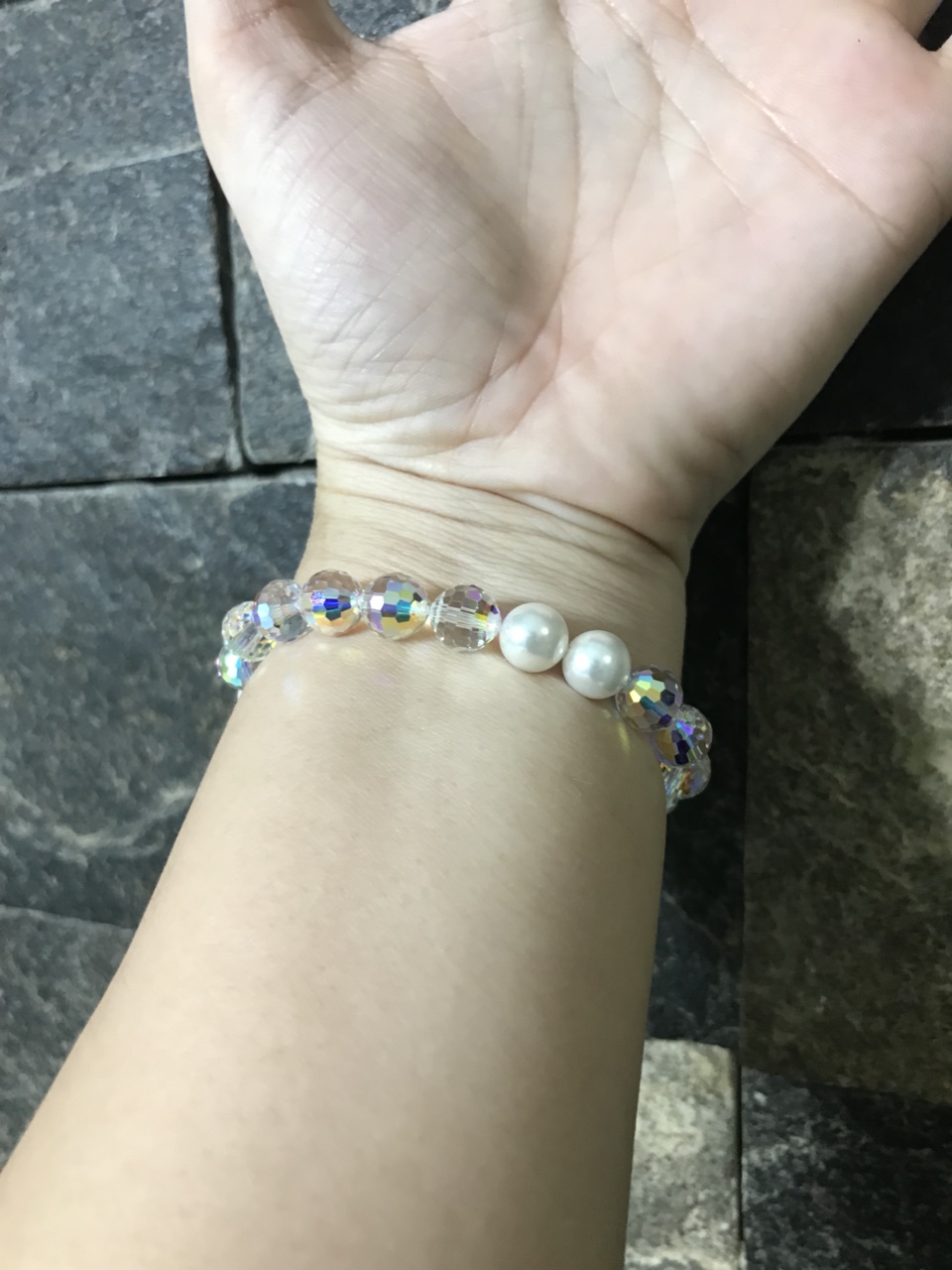 Lắc tay nữ Pha lê Swarovski 14 viên pha lê tròn 6 viên hạt trai PL003