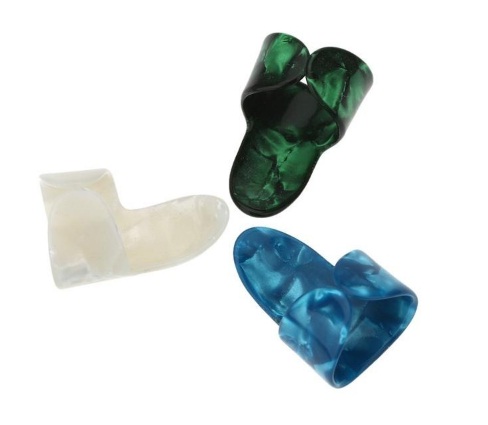 Pick xỏ ngón được làm bởi chất liệu nhựa tổng hợp . Pick cứng và dày giúp người chơi thực hiện các thao tác trên đàn dễ dàng