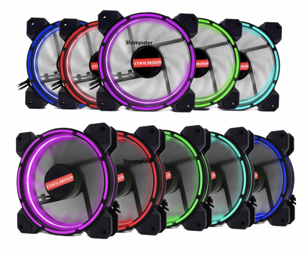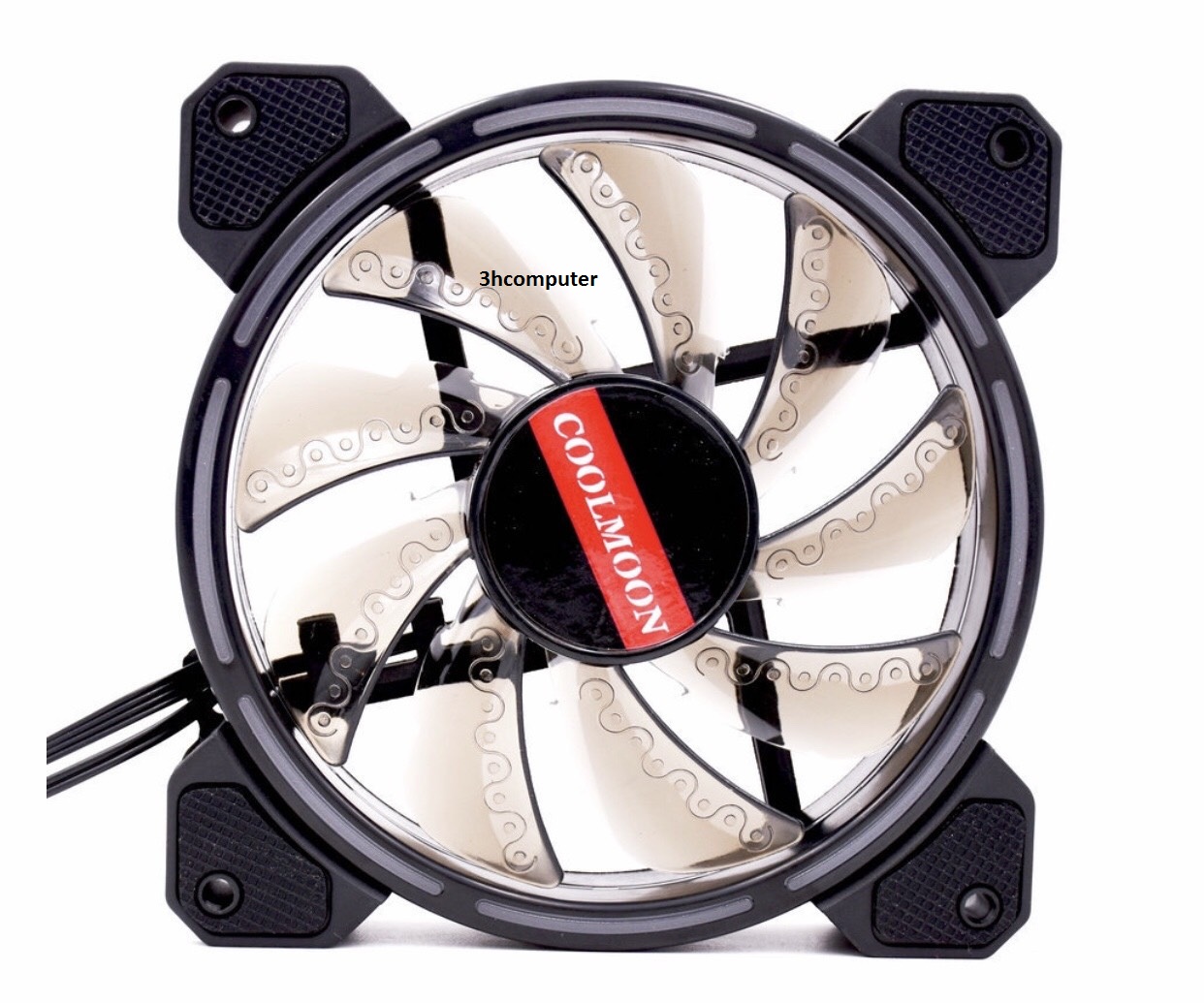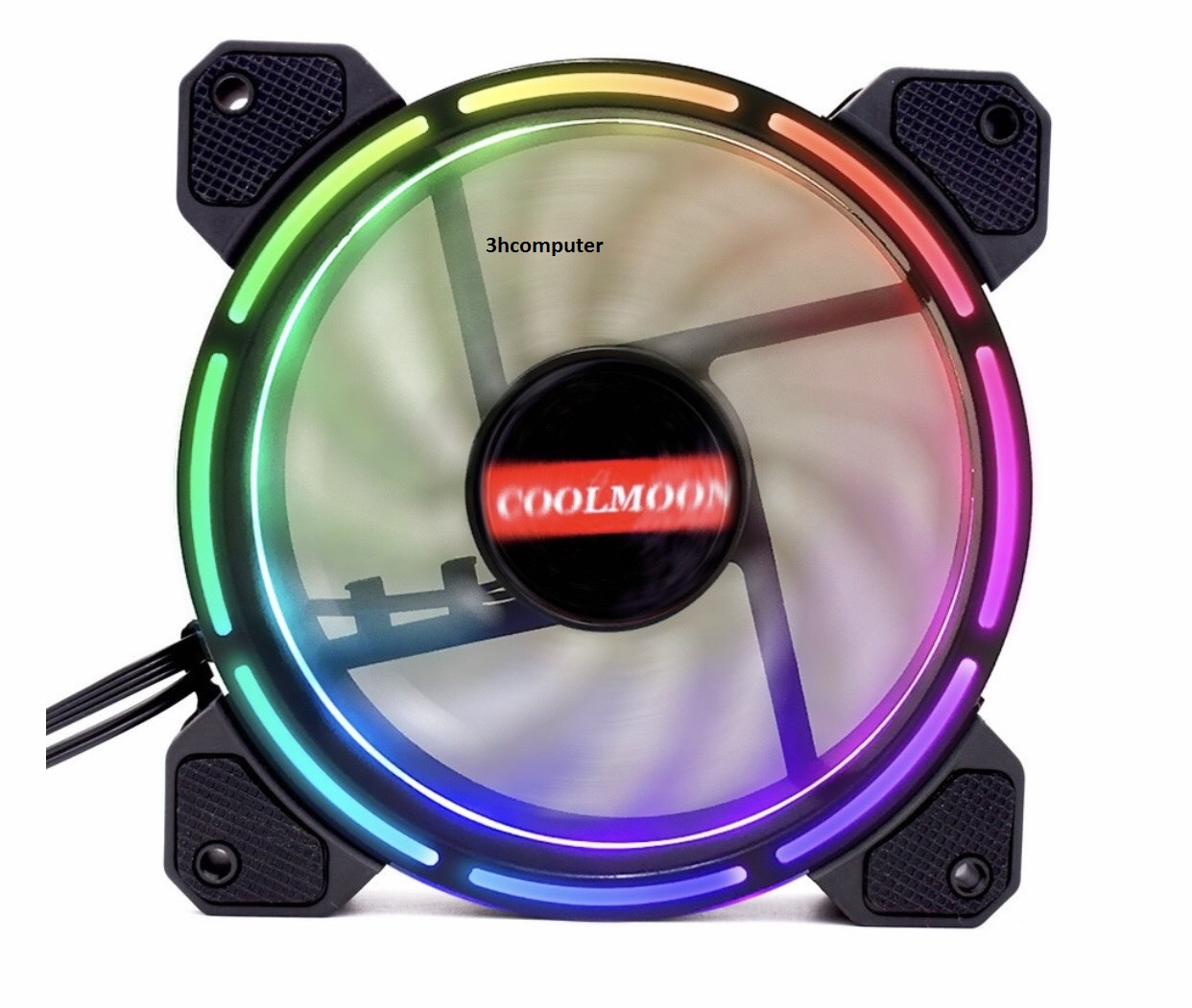 Quạt tản nhiệt Coolmoon RGB v9 - Thiết kế fan kích thước 12cm. - Tích hợp đèn led tại viền quạt và tâm quạt, giúp quạt phát sáng tối đa. - Cánh quạt màu đen có hoa văn chia sáng. - Tốc độ quay quạt: 1600rpm - Nguồn: 12v - Cấp nguồn và khiển chế độ Led qua bộ điều khiển Hub coltroler....