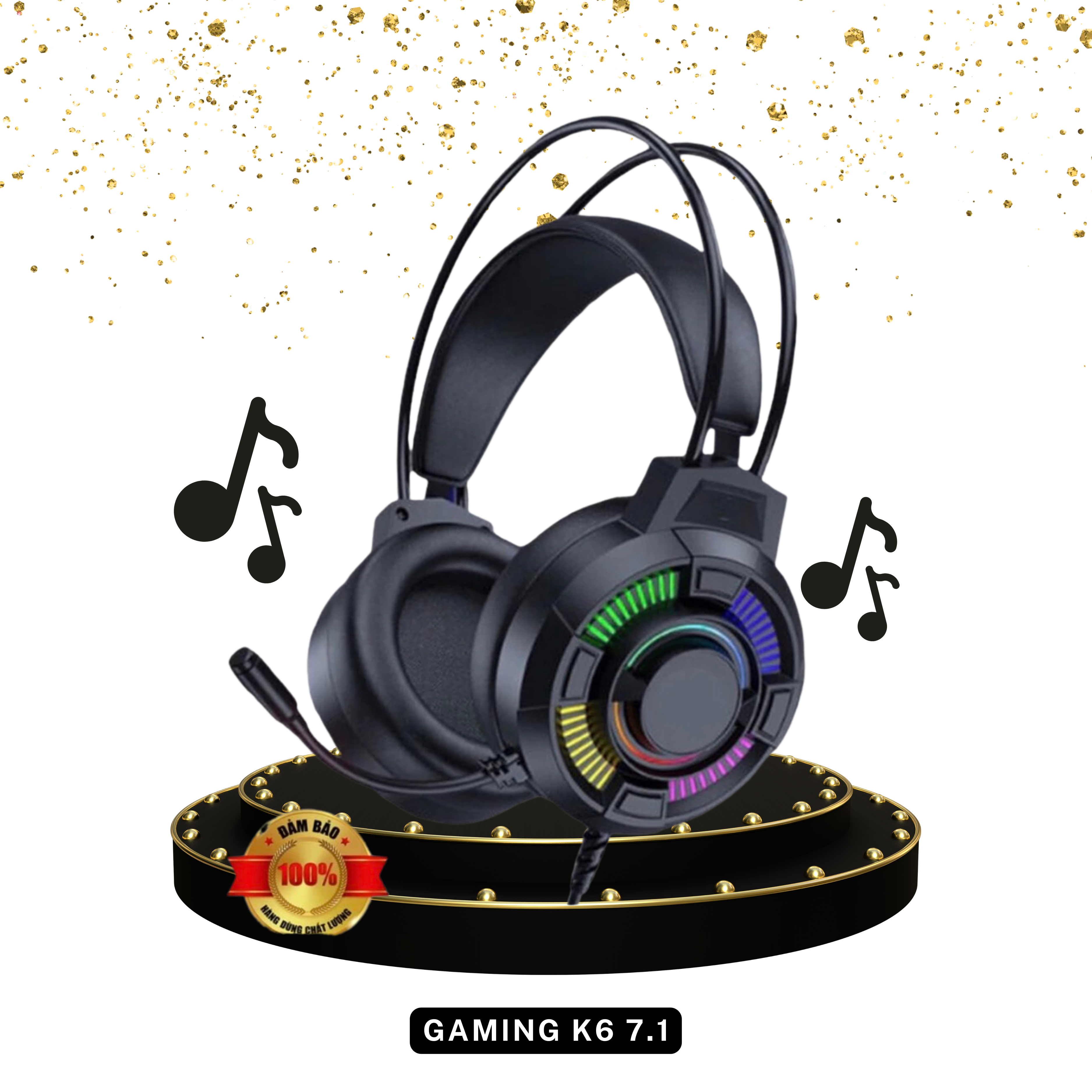 Tai nghe Gaming K6 7.1 chụp tai có mic jack cắm USB có đèn LED, có mic cho máy tính, Laptop
